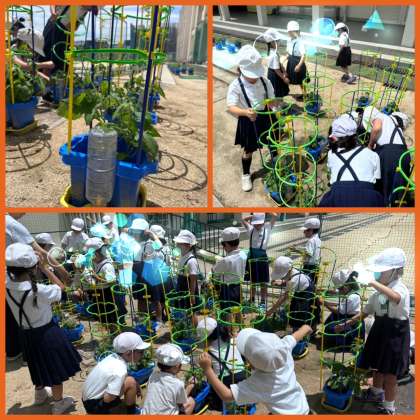 どの鉢も順調に元気に育っています。夏にはどんな色のあさがおが咲くのか、楽しみです。