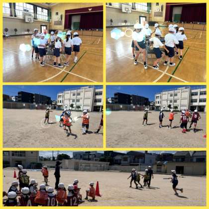 3年生が体育をしていました。お楽しみ会のように楽しんで行っていました。