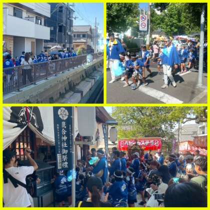 13日の昼は天気にも恵まれ、大勢の人に見守られながら子ども神輿も無事に町内を周ることができました。