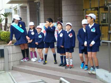 今朝は、昨日と一変、とても冷たい風が吹く日でしたが、「あいさつし隊」の子どもたちが元気に挨拶をしてくれました。