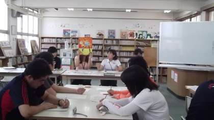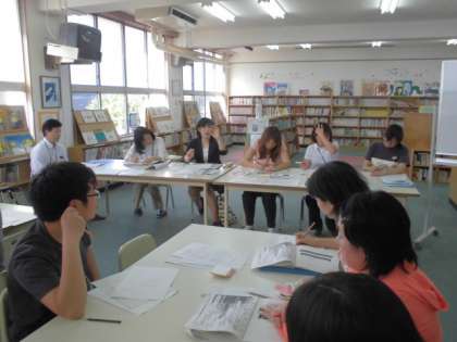 今回の英語活動の授業について、授業者からの反省や授業内容の検討を行い、今後の研究の方向性等を確認しました。特に授業内容については、グループに分かれて話し合い、活発な意見を出し合いました。最後に、市教育センター指導主事の信貴通子先生から指導助言をいただきました。