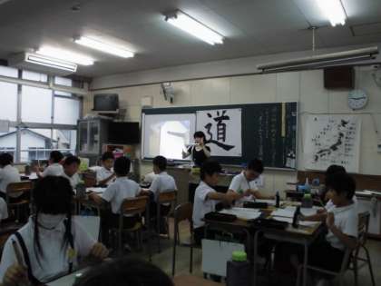 (写真は、5年1組「国語」5年2組「書写」の様子です。)
