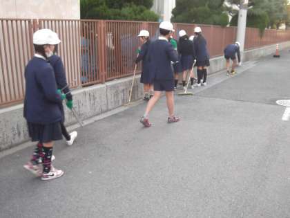 6年生は、学校周りの清掃を行いました。