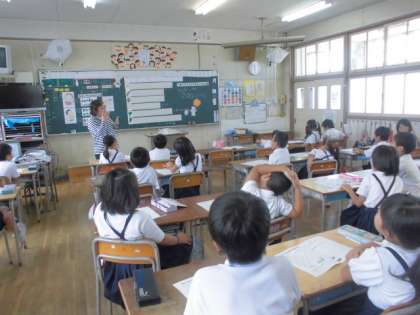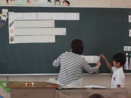 テーマは、「カルシウムのはたらきを知ろう」。カルシウムが多く含まれている牛乳のお話からカルシウムのはたらき、一日に必要なカルシウムの量などを学習しました。