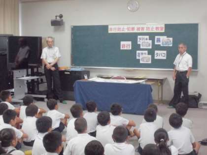 難波少年サポートセンターの方が来校し、子どもたちに夜遊びやタバコ、万引き等の犯罪の恐ろしさを教えていただきました。