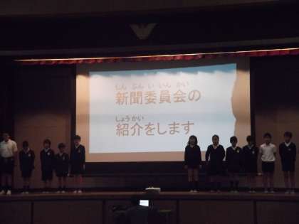 今週の児童集会は、新聞委員会による委員会発表でした。