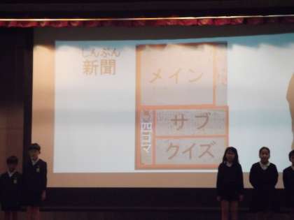 新聞委員会の仕事について、プロジェクターを使用したり、コント調の楽しい劇を交えたりして、とてもわかりやすく発表していました。