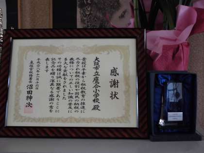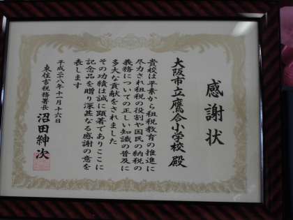 このような取り組みに対して、このたび東住吉税務署から、感謝状と記念品をいただきました。