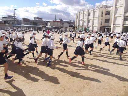 今日から15分休憩を使って、持久走大会に向けた練習を始めました。