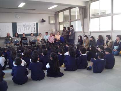本日、見守り隊等 日頃から学校や子どもたちのためにご尽力くださっている地域の皆様、PTAの皆様、そして「ヴァンサンク鷹合デイサービス」の方々をゲストティーチャーにお招きして、『ふれあいお楽しみ会』を行いました。