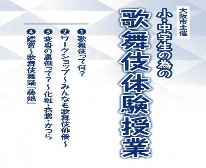 歌舞伎俳優の片岡進之介さんをはじめ、多くのスタッフの方々が来校され、歌舞伎の歴史や特徴を説明していただき、実際に歌舞伎舞踊を披露していただきました。
