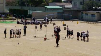 4月19日(水)交通安全指導を行いました。運動場に作ったコースを登校班に別れて歩きました。上級生がリードして安全な登下校の仕方を学園びました。