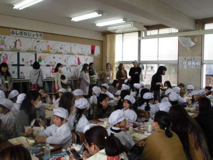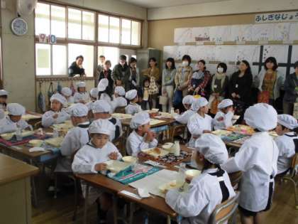 1年生は給食参観でした。ビーフシチューやみかんの缶詰などの献立をおいしくいただきました。