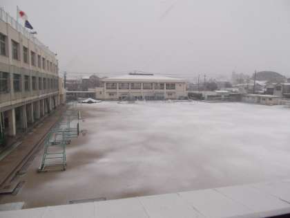 今日は朝から雪です。写真は7時の運動場です。これからまだまだ降りそうですので事故に気をつけていきたいと思います。
