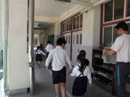 まず、6年生が1年生を迎えにきて、各教室に連れていってくれました。