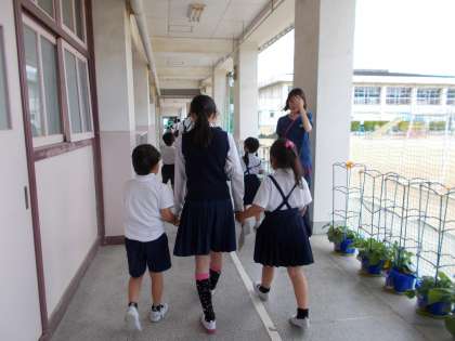 5時間目、鷹合フェスティバルに向けて、たてわり班活動がありました。今回も、まず6年生が1年生を迎えに来て、たてわり班の教室に連れていってくれました。
