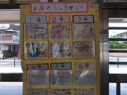 お店案内のポスターも、玄関や階段付近に掲示されています。フェスティバルはいよいよ今週の土曜日です。保護者・地域の方もぜひお越しください。