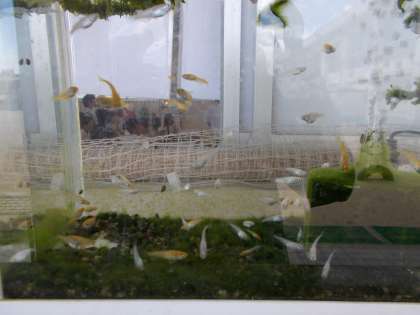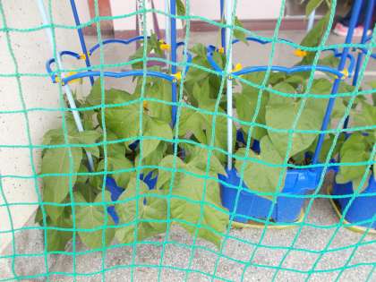 1年生の育てているアサガオ、2年生の育てている枝豆。種まきや苗植えか一か月あまりの間に、ぐんぐん育ってきています。ついこの間、桜が咲いていたのに、季節は流れていますね。2年生の靴箱の上の「ヒメダカ」「白メダカ」も元気に泳いでいます。