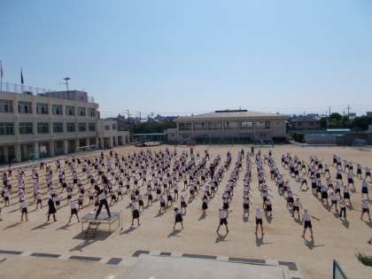 まず、「体操の隊形に広がれ!」の号令で、縦と横の間隔を十分にとって、自分の立ち位置を確認しました。整然と並ぶことができました。