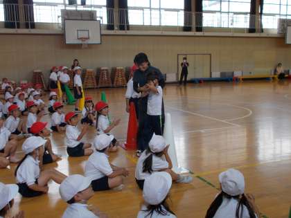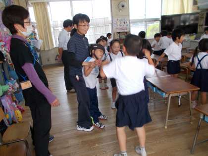 音楽は、「アイスクリームの歌」や「ジャンケンポン」の歌を身体表現やじゃんけんをしながら楽しみました。これからもなかよく交流を続けていきます。