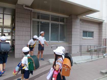 今週は「あいさつ運動週間」です。児童会代表委員以外に、「あいさつし隊」のレンジャー達も参加して、校門で登校してくる子どもたちに、元気のいいあいさつを促してくれました。