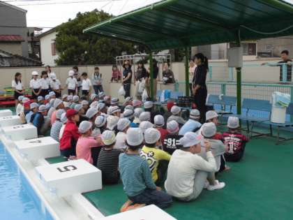 3年生は、着衣泳の意味の話をじっくり聞いた後に、「浮いて待て」の練習をしました。水の事故にあうことのないように注意しなければなりませんが、不測の事態が起きても、この経験を思い出して行動できたら、と思います