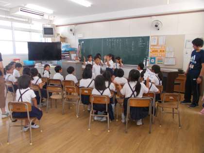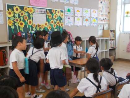 2−1は、「お楽しみ会」でダンスを発表していました。2−2は、「お楽しみ会」での「マジック」の発表の様子です。トランプのカード当てマジックを見せてくれました。