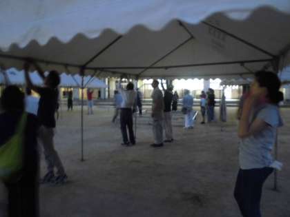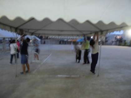 夜になってからは、パパさん部隊や地域の方々も加わって、残りのテント立てです。とてつもない蒸し暑さの中でした。熱中症対策に水分補給の準備もバッチリ!