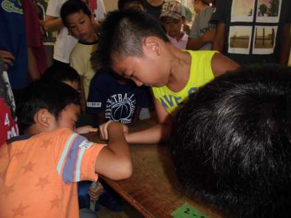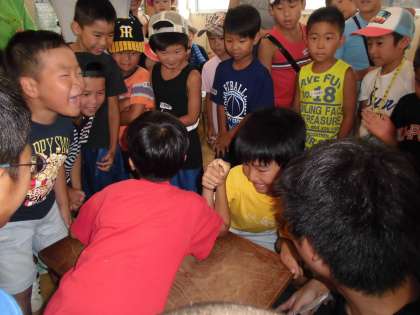 午前9:30より、低・中・高男女別の「アームレスリング予選会」が開かれました。