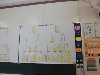 2−1、2−2の教室が会場となり、保護者の方の熱い声援の下、出場者達は頑張りました!「1・2年男子の部」の様子と結果です。