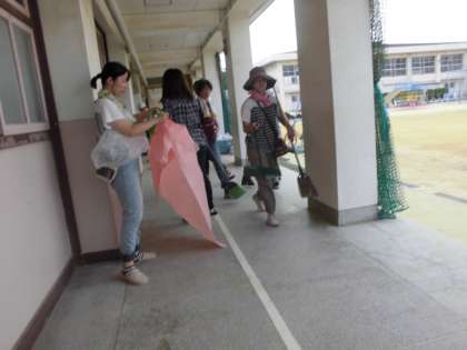 楽しかったイベントの後、学校を元の姿に戻すために、保護者の方や地域の方が、当日そして翌日の朝早くから集合してくださいました。