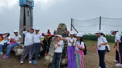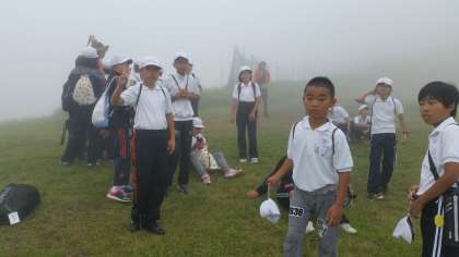 冬にはスキー場のゲレンデとなる山なので、起伏が少なく緩やかな上り坂が続きます。しかし、山頂まではかなりの道のりでした。活動班全体のペースを考え、友だちの様子にも気を配りつつ、山頂を目指しました。