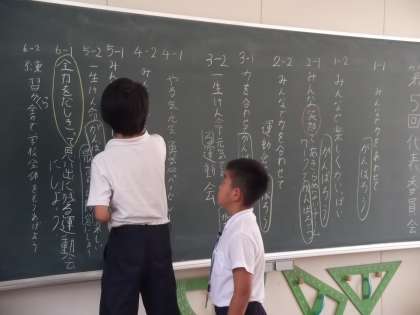 一つ目は、運動会のめあてを決めること。そして二つ目は、来月に控えているなかよしオリエンテーリングの準備です。