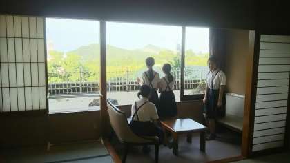 ホテル「扇野の里 扇芳閣」の様子がおくられてきました。「広ーい!きれいー!」と歓声を上げているそうです。窓から見える鳥羽の山の風景が、きれいですね。