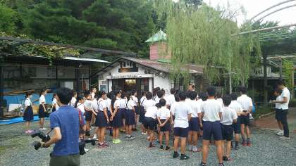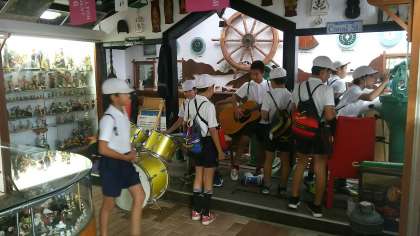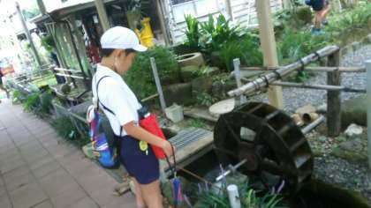 気持ちの良い朝を迎えました。おいしい和食の朝食をいただいた後、ホテルの7Fにある「めだかの学校」や「音楽人形館」を散策しました。メダカ、オタマジャクシ、アメンボを発見したり、トリックアートやからくり人形に「すごい!」とはしゃいでいたそうです。