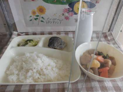 お魚が苦手なお子さんが、しばしばいます。「先生、骨ある?」「ほとんどないよ。でも、もし見つかったら取ったら大丈夫。お魚の命をもらっているのだから、しっかりいただこうね」という会話をしました。魚が大好き!というお子さんもいます。苦手な食材であっても、少しずつでも食べることができるようになることが、食育上でも大事なことですね。