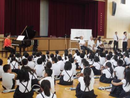 11月の神奈川フィルハーモニーの音楽鑑賞会の際に、オーケストラと一緒に演奏する「おもちゃの交響曲」(1〜3年)「威風堂々」(4〜6年)の事前練習会が昨日ありました。オーケストラの指揮者の先生、オケの団員の方数名と共に、それぞれのパートの練習、全体練習をしました。ヴァイオリンの音色に聞き惚れ、全身でリズム打ちのタンバリンに引き込まれ、一生懸命きれいな音色を出そうとがんばっていました。