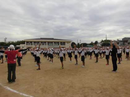 今日は、運動会の開閉会式の並び方で、赤白に分かれました。ふだんの朝会と違って1年生の教室前を正面にします。1年生の先頭さんを基準に体操の隊形に広がる練習もしました。6年生に合わせて間隔を取るのが、低学年にはなかなか難しいです。ラジオ体操は、1学期から練習しているので、スムーズでした。