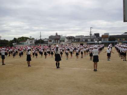 来週から全体練習が始まります。入場行進の後、今日の隊形に並ぶようになります。