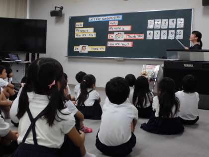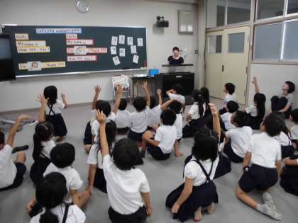 1年生は、他学年より遅く6月から英語タイムを実施し、「DREAM」を使って週に3回英語に慣れ親しんできました。着実に成果が上がってきています。