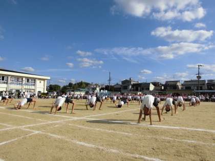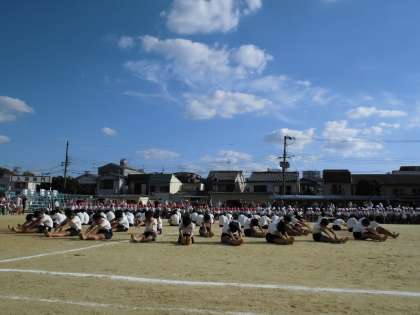 大トリは、6年生「体と旗の表現運動」です。組み立て体操の技が、安全面から制限されるようになり、構成が難しくなってきました。大技は少なくなっても、一人技、二人技を中心に、低学年にはできない技を見せてくれました。