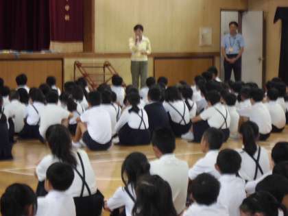 集会後、生活指導の矢田先生から、昨日地域の方から連絡いただいた件で、児童全員に指導がありました。