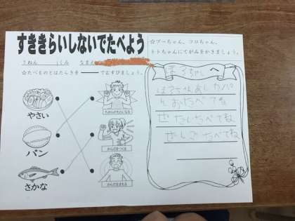 栄養指導を受けたあとは、給食の好き嫌いがなくなって、がんばって食べる子が増えます。ご家庭でも「習ったでしょう?」と、利用してください。