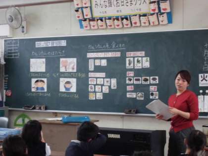 本日の2時間目、3時間目はそれぞれ3−1、3−2で栄養士の石見先生から「ほねをじょうぶにする食べ物を知ろう」という学習をしました。カルシウムの主な働きに「骨や歯を作る」「心臓のはたらきを助ける」「けがをしたとき血を止める」「イライラしにくくする」があること、カルシウムを多く含む食材にどんなものがあるか、等について学びました。