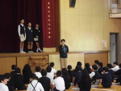 明日のオリエンテーリングに向けて、矢田先生から大事な確認事項の指導がありました。昨年度まで、遠足は校外学習という名目となり、「おやつ」は禁止になっていました。食物アレルギーのあるお友達もいる中で、おやつ交換をして、もしも命に係わる事故につながってはいけない、という配慮からでした。けれど、みんなで学校から郊外へ出て、ふだんとは違う開放的な空気の下で、お弁当を食べた後の「おやつ」は、最大の楽しみです。ですので、「友達の命を守ることにつながる」「絶対におやつやお弁当のおかず交換はしない」という約束の上で、今年は「遠足」復活で、春の遠足では、おやつを許可しました。ところが、一つの学年で交換したことが判明しました。今回は最後通告です。明日のオリエンテーリングで、同じようなことがあれば、次からは去年までのように、「校外学習」に戻り、持ち物から「おやつ」はなくなるよ、と。子ども達は神妙に聞いていました。ルールを守ってこそ、楽しい活動となります。怪我なく事故なく、大泉緑地でのオリエンテーリングを楽しんできたいものです。