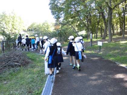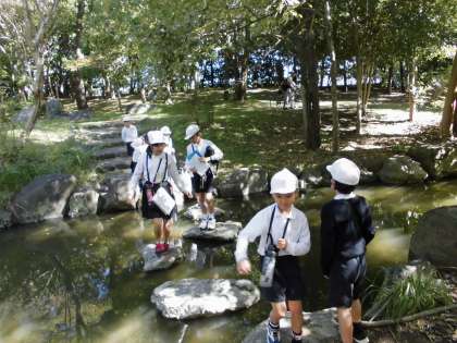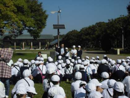 たてわりグループ活動の「なかよしオリエンテーリング」を、今年度、行先を「長居公園・植物園」から「大泉緑地」に変更して実施しました。長居公園は近くて便利なのですが、「秋の遠足」もなくなったので、遠足がてら遠出してみてはどうか、ということで、2年ほど前から、長居公園と隔年で実施していくことを目標に、児童会担当教員中心に計画を進めてきました。