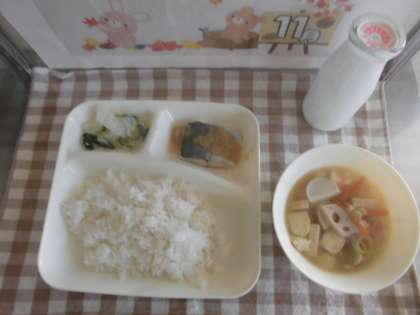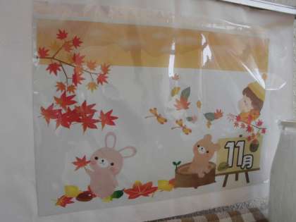 11月になったので、給食見本を入れる戸棚の絵も変わりました(^O^)