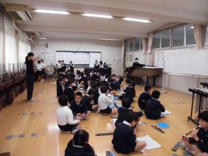 3年生は、「世界旅行へレッツゴー!!」という題名で、大阪弁での元気な群読や、リコーダーの演奏や合奏を発表します。リコーダーの音色も揃ってきました。
