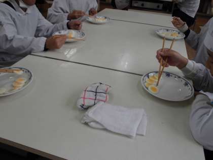 試食タイムの様子をみると、ゆでたまごとはいえ、盛り付けの方法に個性がでていました。2組は明後日です。