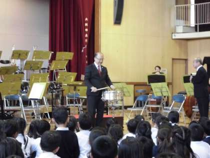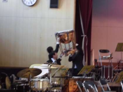 最後は、打楽器です。「ティンパニ」は、大きくどっしりしていますが、持ち上げて見せてくださいました。お腹に響くような重みのある音でした。